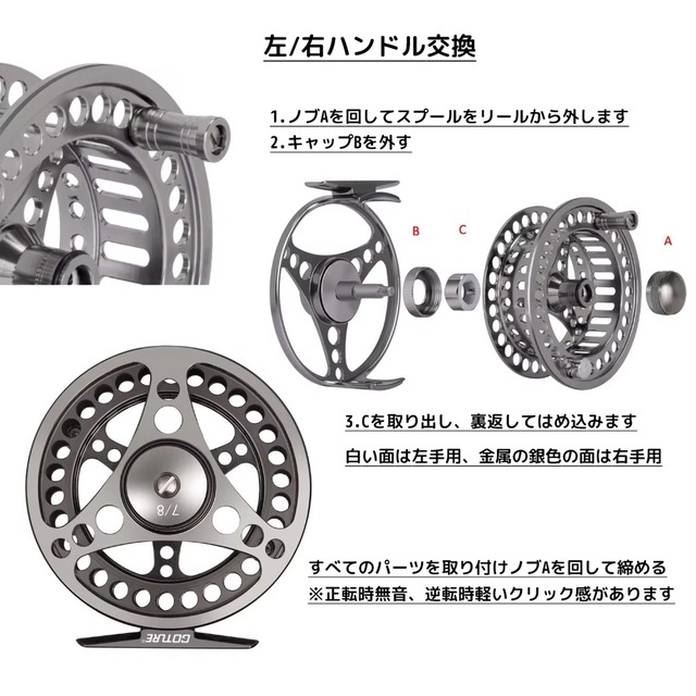 フライフィッシングリール+ スペアスプール 5/6 3/4 フライ用リール 左右交換可能 軽量 Goture