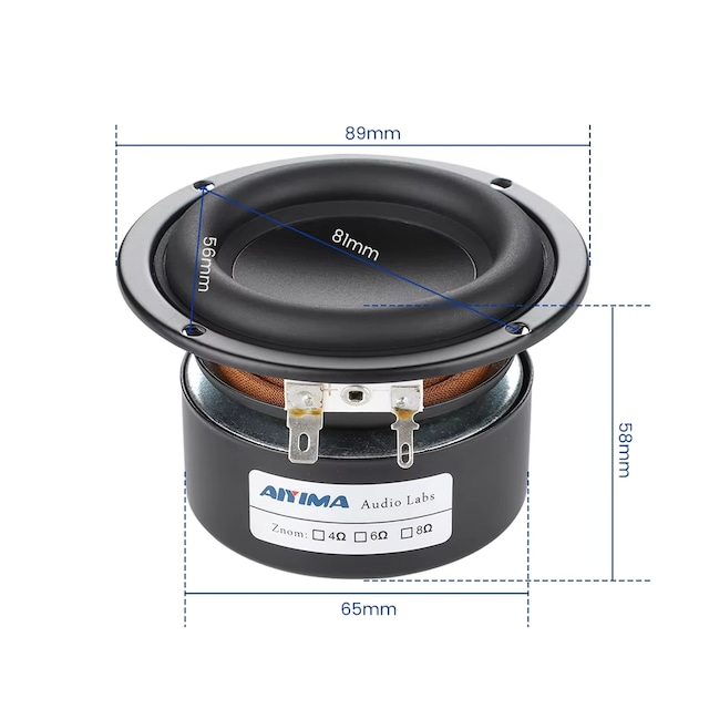スピーカーユニット 1個 サブウーファー 3インチ 25W ラウンド スクエア 4オーム 8オーム 自作スピーカー