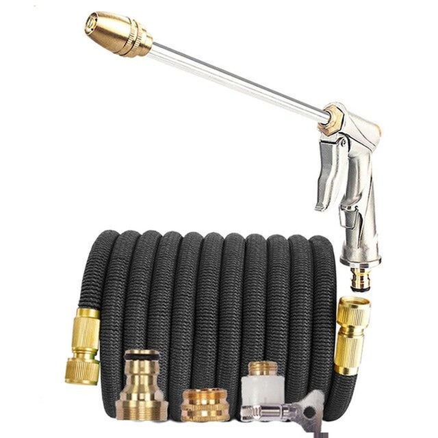 伸縮散水ホース 15m スプレーガン マジックホース ガーデニング 洗車 水まき 園芸 花壇 ノズル