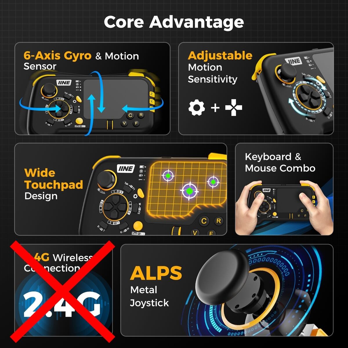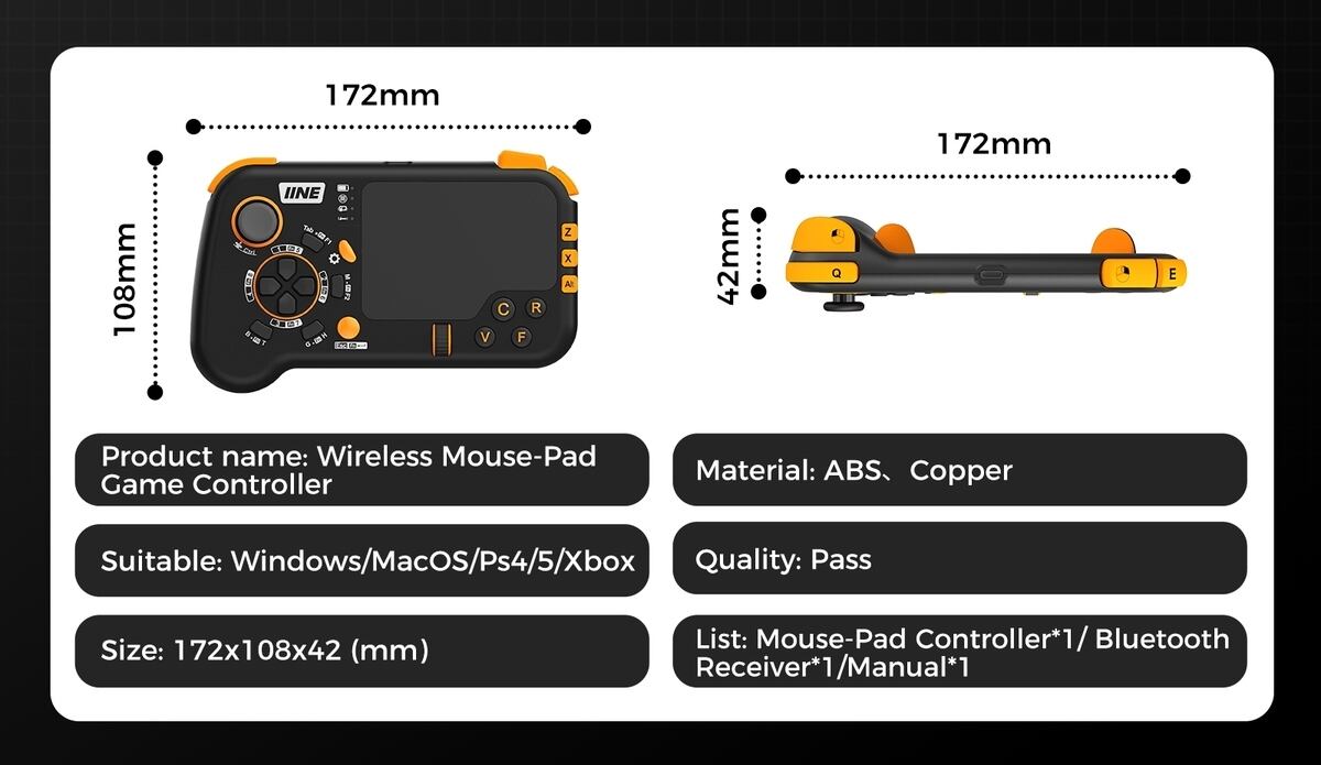 タッチパッドゲームコントローラー 有線 Windows Mac PS4 PS5 Xbox 6軸ジャイロ
